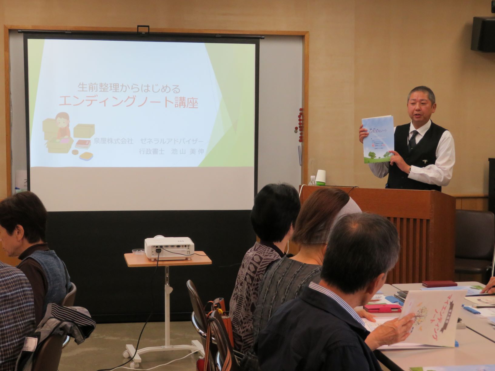令和元年10月31日(木)14:00〜15:30 近江堂リージョンセンターにて終活支援教室を開催しました。行政書士の先生に来ていただき、生前整理のポイントやエンディングノートの書き方についてお話して頂きました。