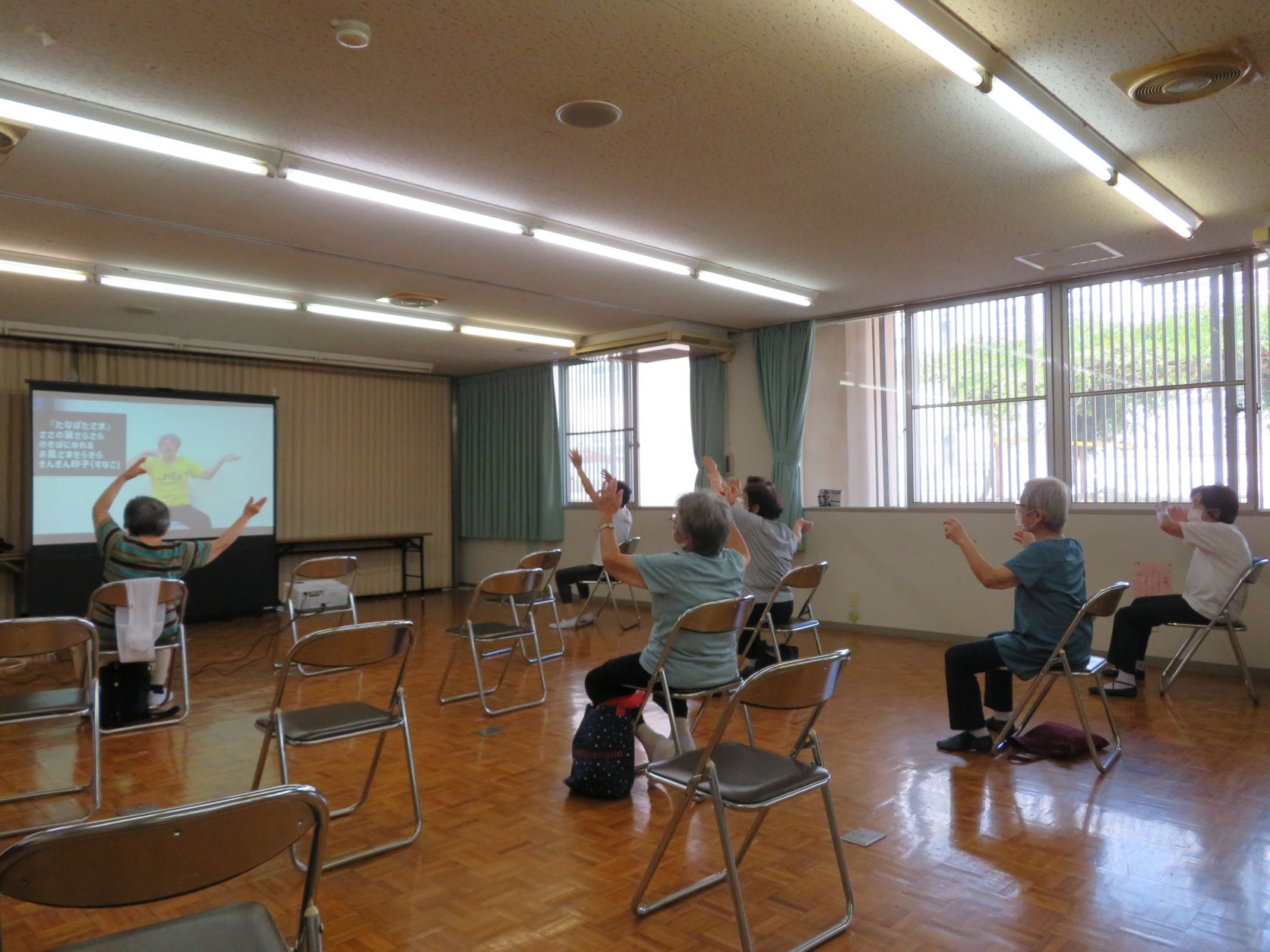夏本番を迎え暑さも厳しさを増す中、少しでも涼んでもらえるような体操をしました!