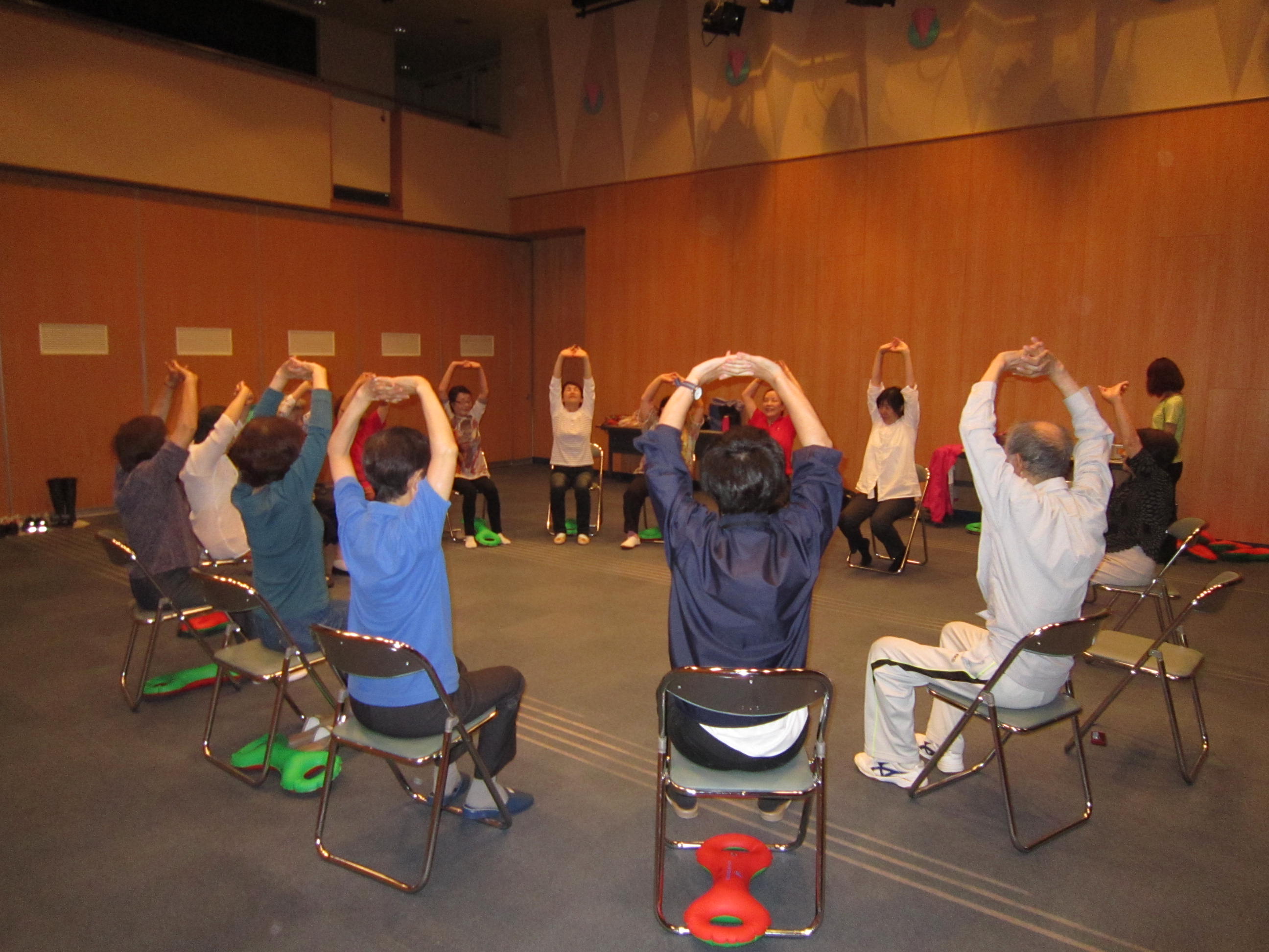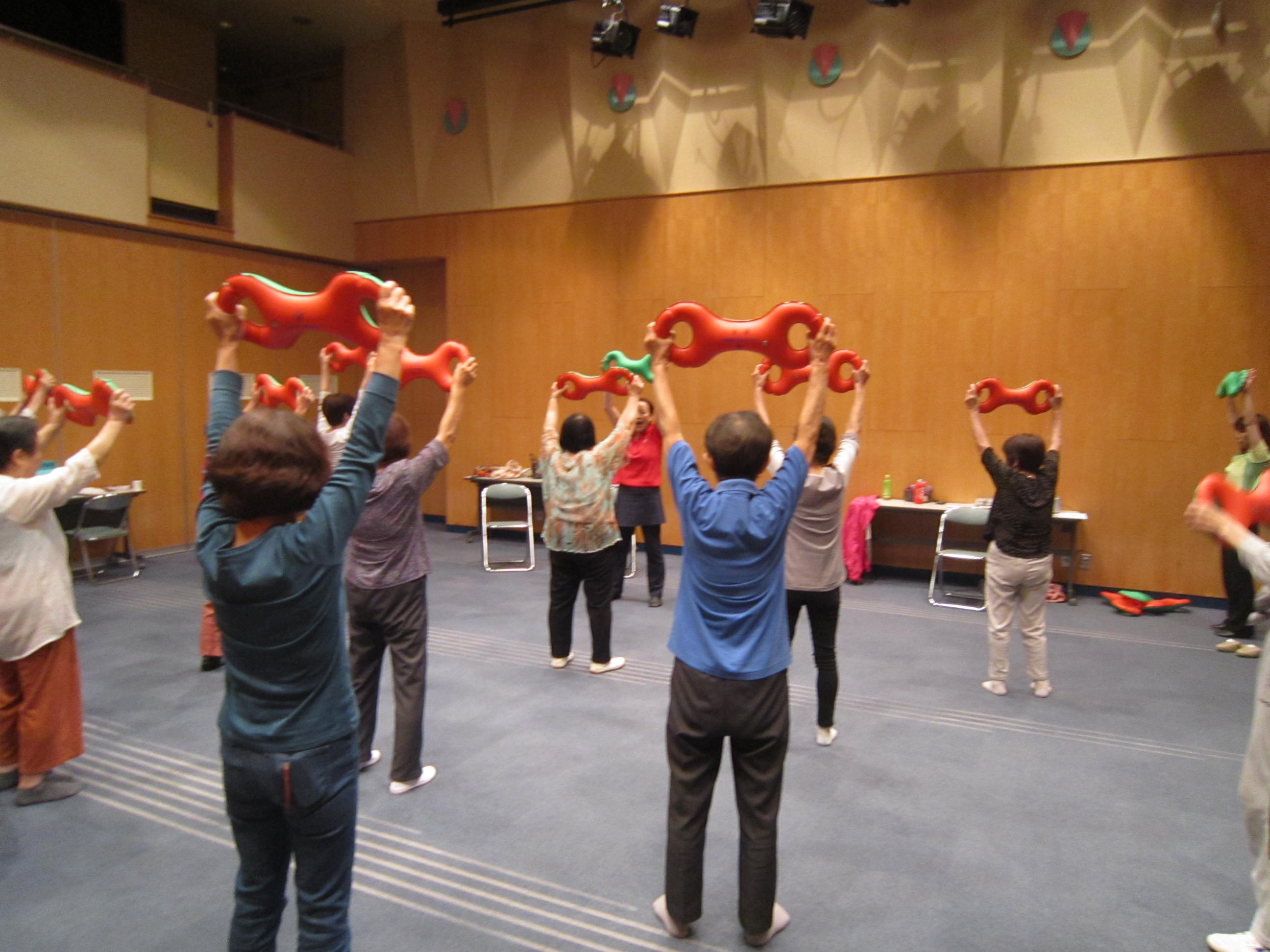 地域包括支援センター社協荒川は毎月第1・3水曜日、はすの広場(近江堂リージョンセンター)にて介護予防教室を開催しています。平成30年6月20日(水)は日本3B体操協会の栗本先生にお越しいただきました。ベルという器具を使い、音楽に合わせて様々な体操をしました。全身を動かすことができ、笑いもあり、楽しい時間を過ごしました。
