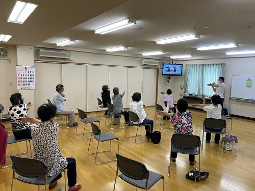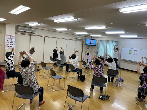 令和4年5月17日(火)に近江堂リージョンセンターにて介護予防教室(第1部・第2部合同:10:00〜)を開催しました。